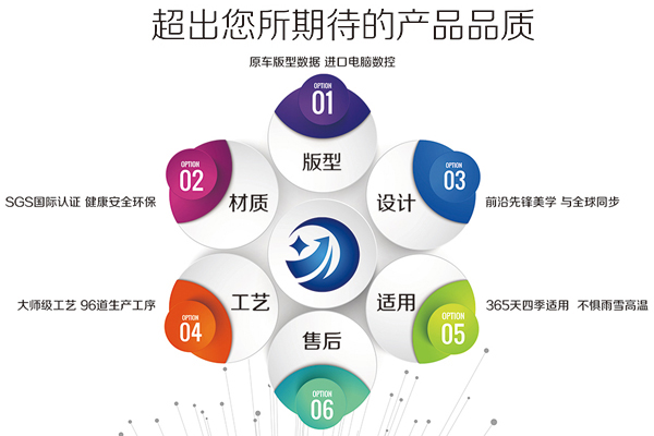6大系列产品,甄选前沿科技材质,专车专享定制,万种风情,款款精彩,总有一种风格适合您,打造您的爱车豪华内饰。